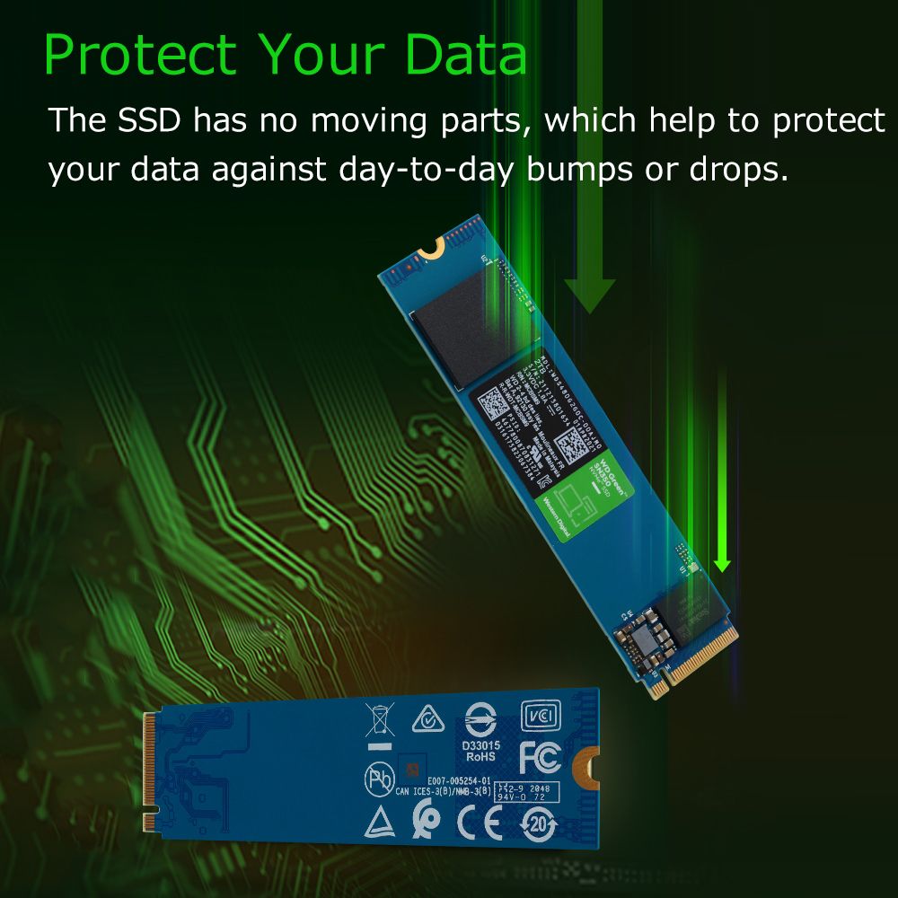 The SSD has no moving parts, which help to protect your data against day-to-day bumps or drops.