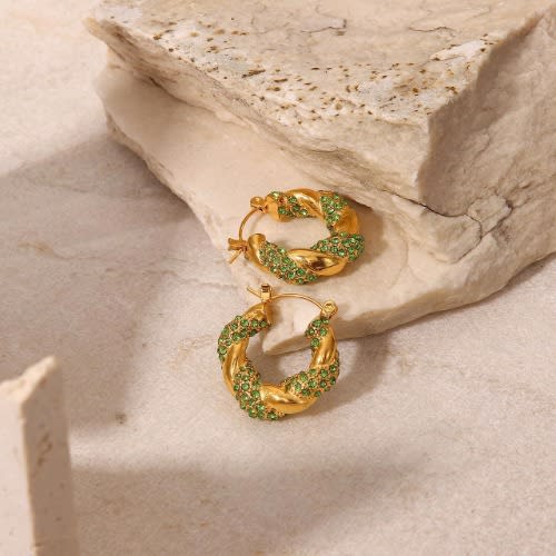 Buy Green Zircon Twist Earrings - Gold Plated in Nigeria