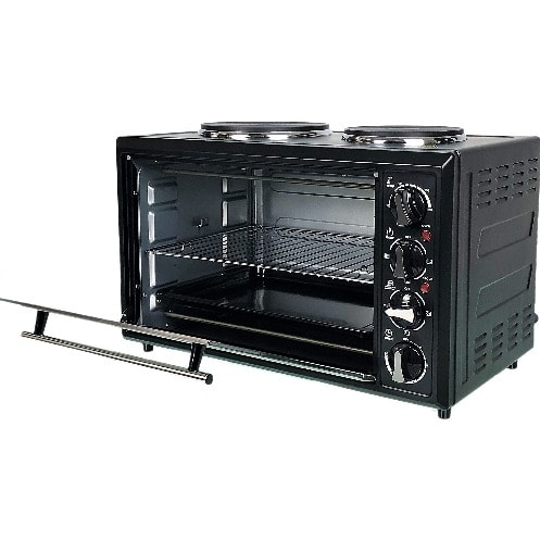 This compact electric table top cooker with Double plates, each with a separate adjustable temperature control and built-in thermo cut-off function, will give your cooking experience the feel of comfort, ease and luxury. 2 cooking plates and a clean design ensure you don & rsquo;t have a cluttered kitchen top.