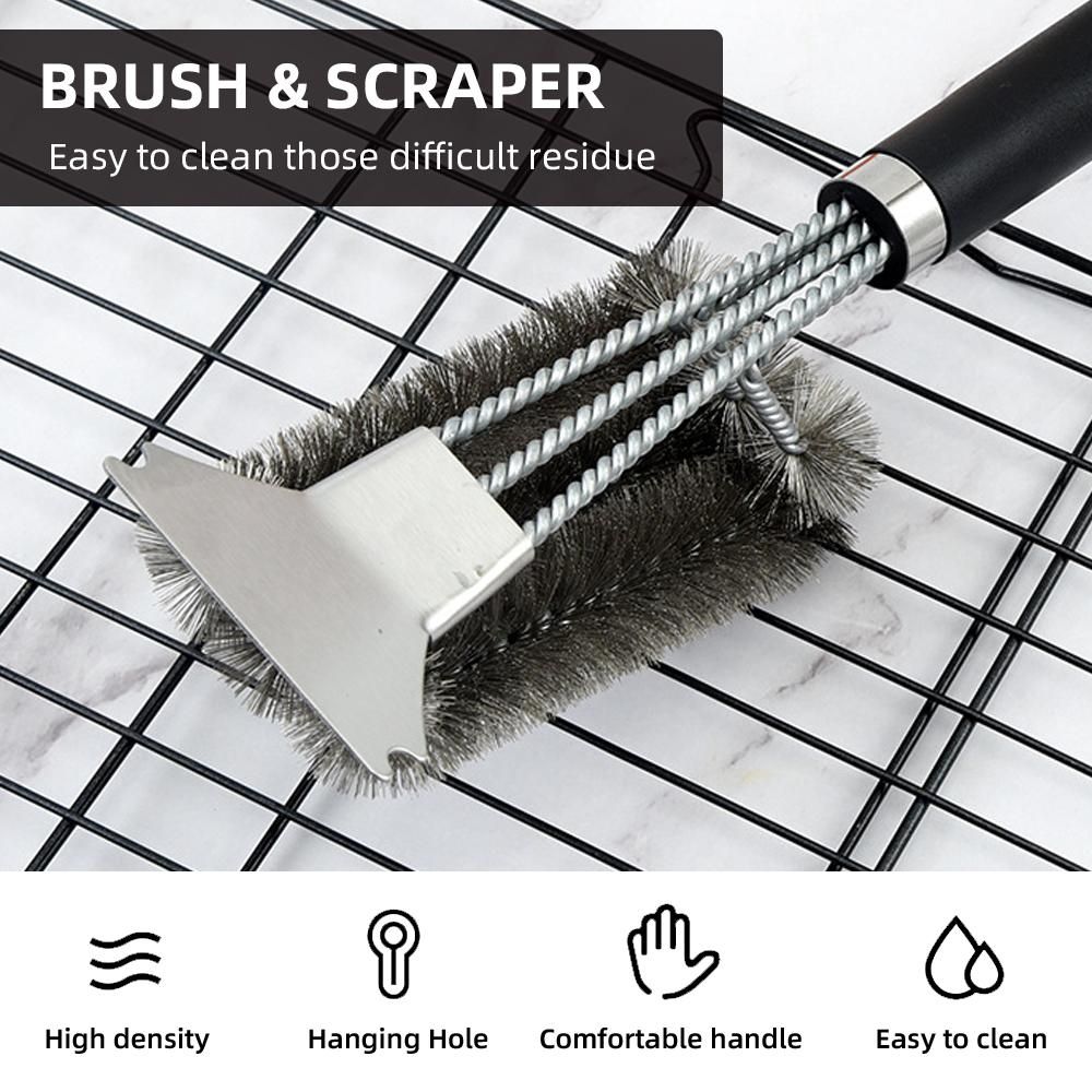 Buy Grill Brush with Scraper Triple Scrubbers Stainless Steel Strong Cleaner Barbecue Cleaning Brush Grill Grate Cleaner in Nigeria