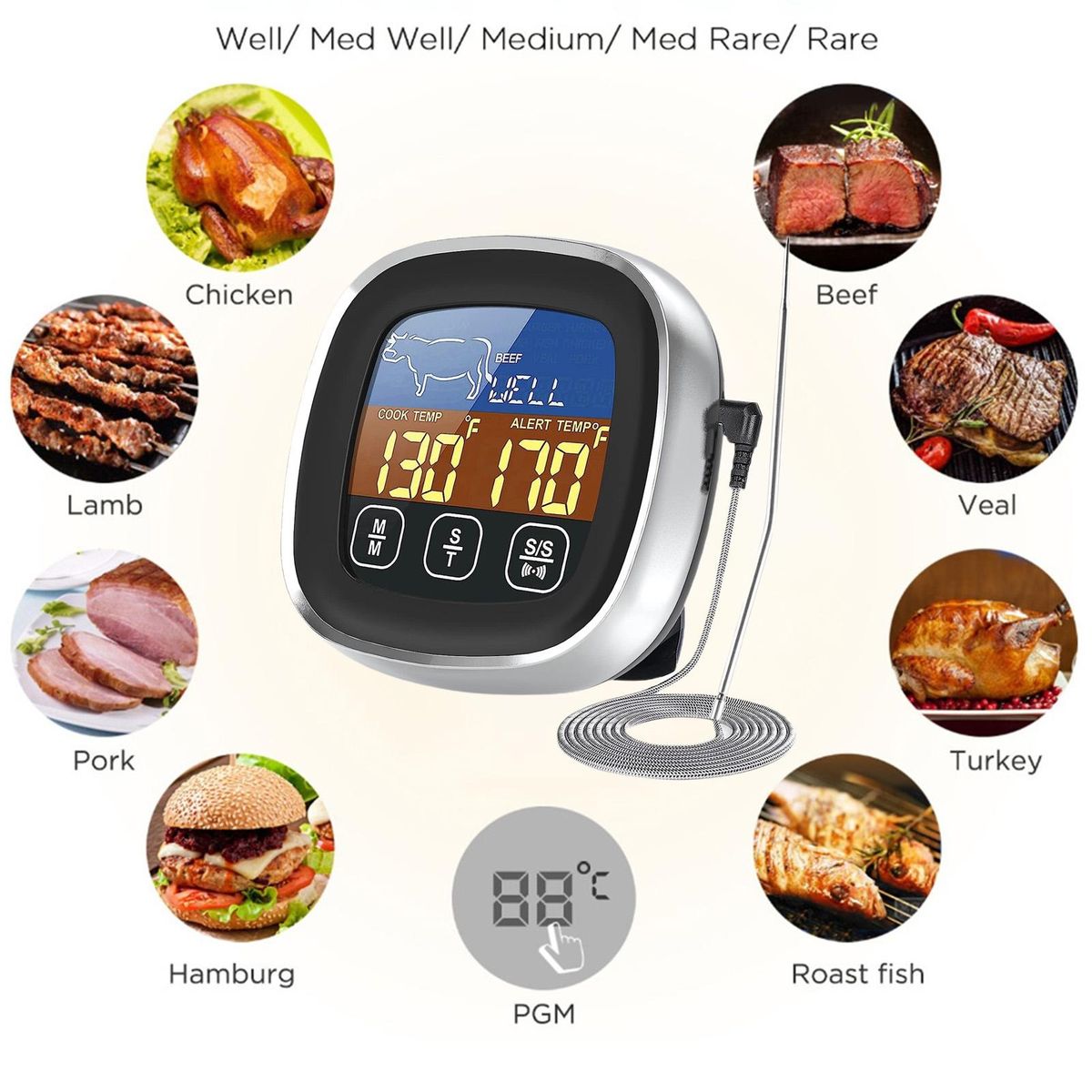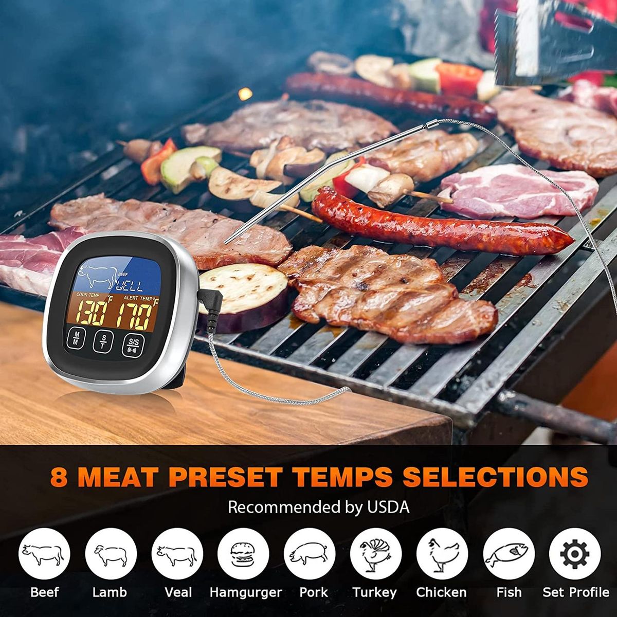 With programmable preset temperature and timer functions, this thermometer offers ultimate control over your cooking. it includes 8 built-in food preset temperature modes, making it suitable for various types of meat. additionally, you have the flexibility to manually set the alarm temperature according to your preference. once your desired temperature is reached, the thermometer will alert you with a beep, ensuring perfectly cooked meals every time.
