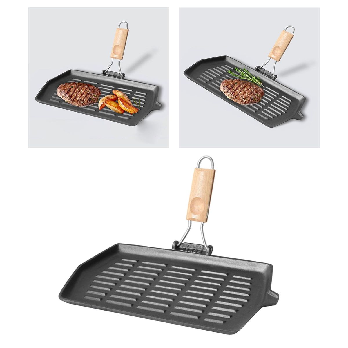 【Features】: Grill Pan with Folding Handle, effective protection, high capacity, which is convenient store and does not occupy space.