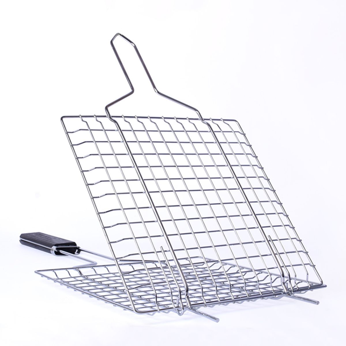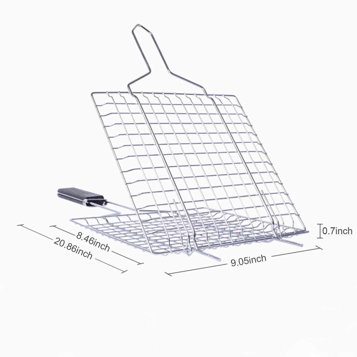 The grilling basket is made of durable iron for long-lasting use and easy to clean, and heat resistant wooden handle provides a safe and comfortable grip. Grilling grate locks food in place and enables easy flipping of grilled food. Ideal for grilling burgers, steaks, vegetables, meat, prawns, fish, and other seafood.