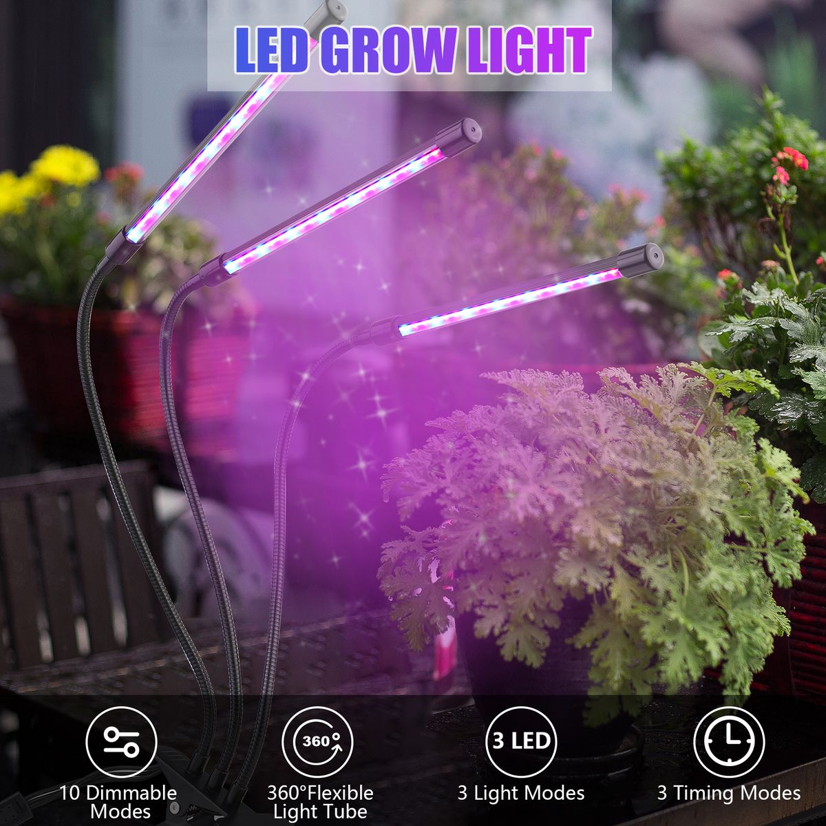 Premium quality grow lamp offers extra light to promote plant germination, seedling growth, flowering and fruiting. With a sturdy metal clip and adjustable arm, clip it anywhere and adjust the direction as you want. 10 dimmable levels, 3 lighting modes, 3 timers, upgraded clip, this all-around grow light can satisfy all your needs!