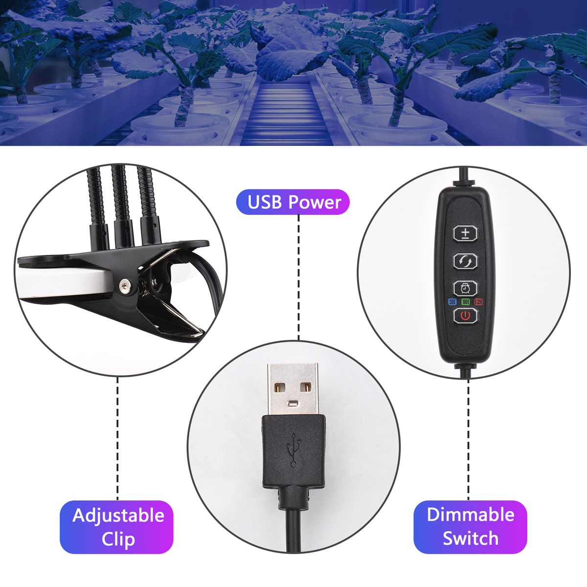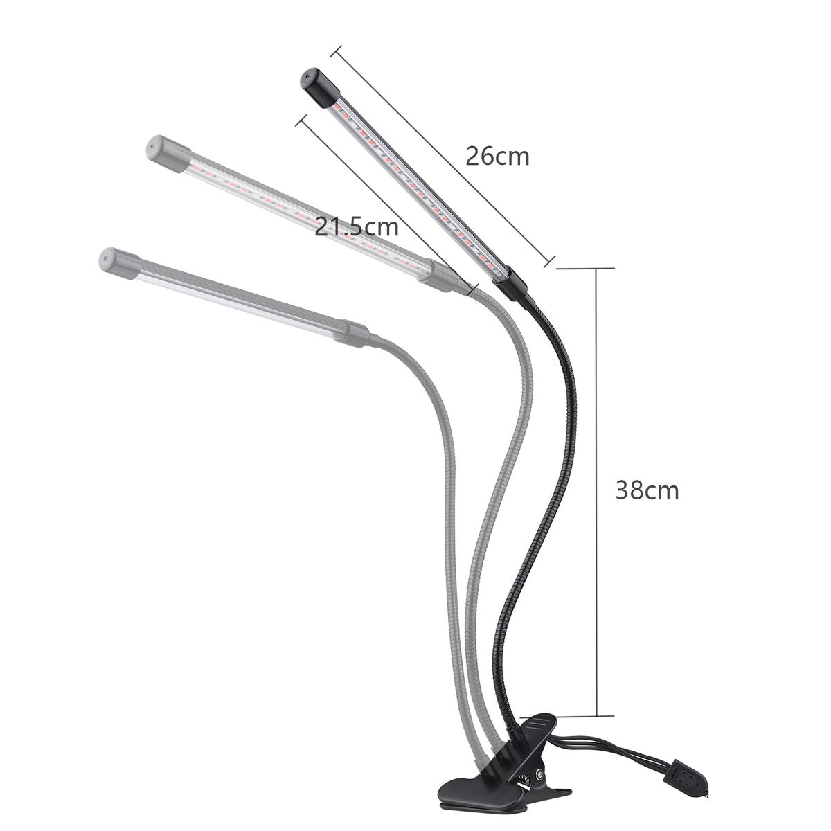 360 deg; Flexible Arm: The long size arms help light cover a larger area to enhance plants growth as any desired angle and direction you want.