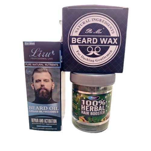 Hair Growing Kit, Beard Growth Oil + Beard Balm + 100% Booster