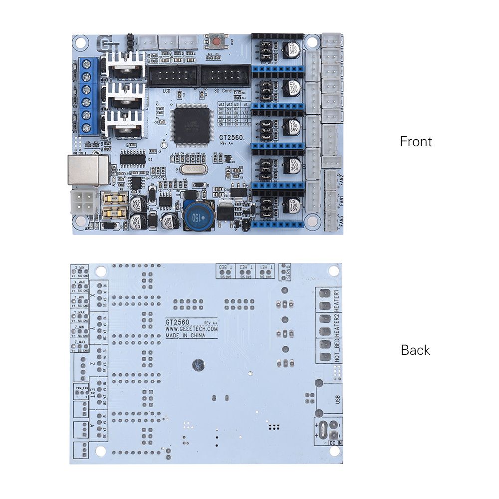 Substitutive of the Mega2560+Ultimaker and the Mega2560+ramps 1.4 kit, GT2560 can not only take full place the them on respect of both software and hardware, but also has more premium features: the streamlined interfaces effectively avoid the unnecessary troubles, well-regulated compaction of components