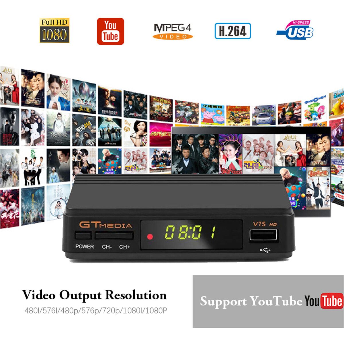 GTMEDIA V7S HD -S2 TV Digital Video Receiver HD 1080P Set-top Box No USB WIFI