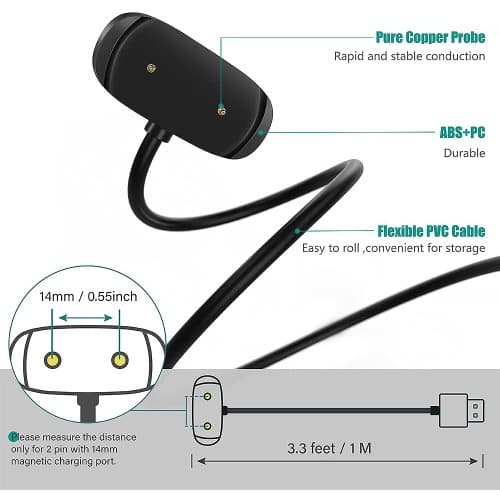 Thanks to the high quality magnets, the Xiaomi Mi Band 3 remains securely in place during charging.Super-fast charging thanks to the copper wire coreMade of high quality and durable TPE materialPrevents rust and oxidation thanks to alloyed connections