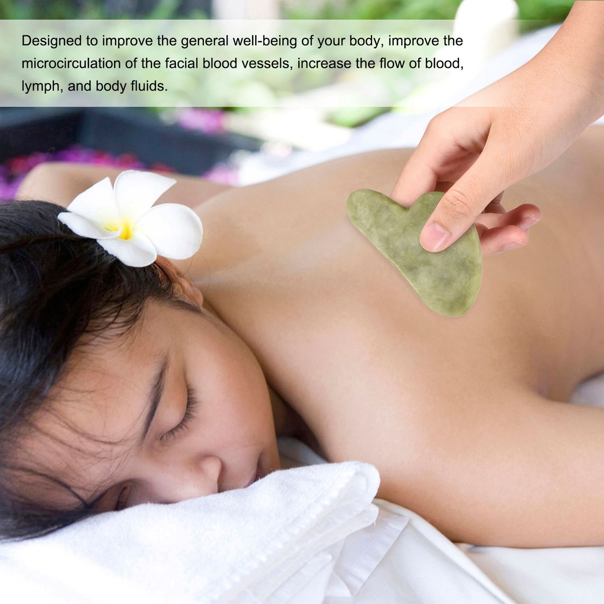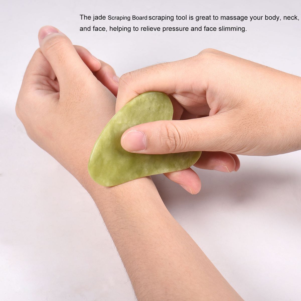 The jade scraping tool is great to massage your body, neck, and face, helping to relieve pressure and face slimming.