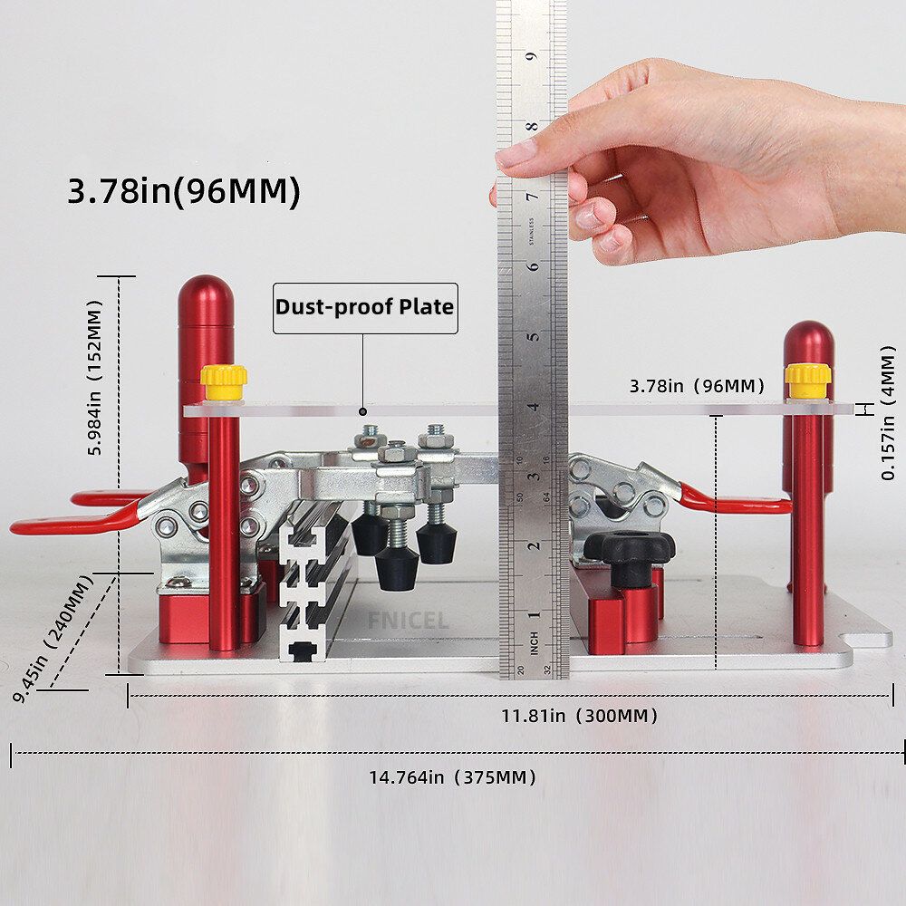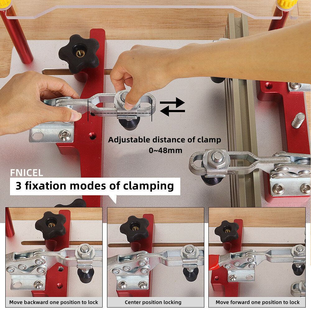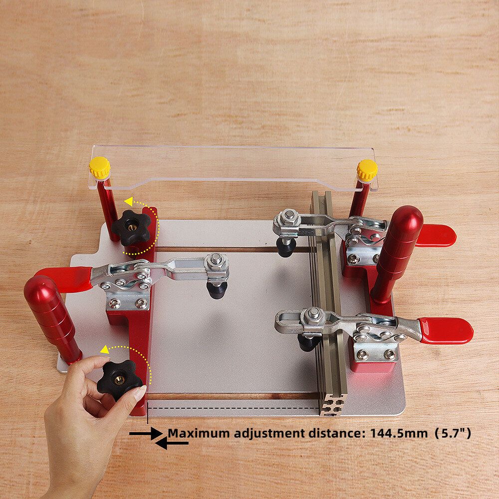 Features:1 gt;The Rail Guide Coping Sled is an indispensable tool for making precise, square, clean cuts for door and drawer fronts.2 gt;When building cope and stick door and drawer fronts, one of the tasks that must be done is to cut the end grains of your rails. This sounds easy enough, however the narrower your rails are, the more difficult it is to hold the stock firmly up against a router table fence. Our 3 gt;Rail Guide Coping Sled solves this issue and helps you make precise, square, clean cuts for rail and style doors, drawer fronts and most any other type of end grain cut on your router table.4 gt;The idea behind the Rail Guide Coping Sled is simple; hold your rails firmly at a 90 degree angle to your router table fence so you can feed your stock through the cutter for the cleanest, squarest cuts possible. When doing drawer fronts which Regular times use very narrow rails, this sled will prevent your stock from dipping or pushing in too far and also keeps your hands away from harm.5 gt;We have included a single sacrificial block with the sled to get you started with your first profile. The sacrificial block helps to prevent end grain blowout at the back of your end grain cuts. Also included is an abrasive strip that is adhered to the adjustable fence. The abrasive strip keeps your stock from sliding or wandering during the coping process. That, along with the heavy duty hold down toggle keeps your stock firmly in place.6 gt;Many sleds rely on the miter slot for reference. Our coping sled uses the fence as a reference instead. The Rail Guide Coping Sled Pro features a clear acrylic fence for reference which is slant and raised 2\\\' above the base so you won\\\'t cut into the sled. Using a fence rather than a miter bar mounted to the bottom means that you will always be parallel to the router table fence. This is a distinct time saving advantage as you will no longer have keep re-adjusting your router table fence Specifications:Material: aluminum alloyColor: RedMaximum adjustment distance of clamping width: 144.5mm (5.7inch)Adjustable distance of clamp: 0~48mm (1.9inch) Package included:1 x Rail Guide Coping Sled