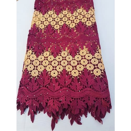 Buy Guipure Lace - Wine & Gold - 5 Yards in Nigeria