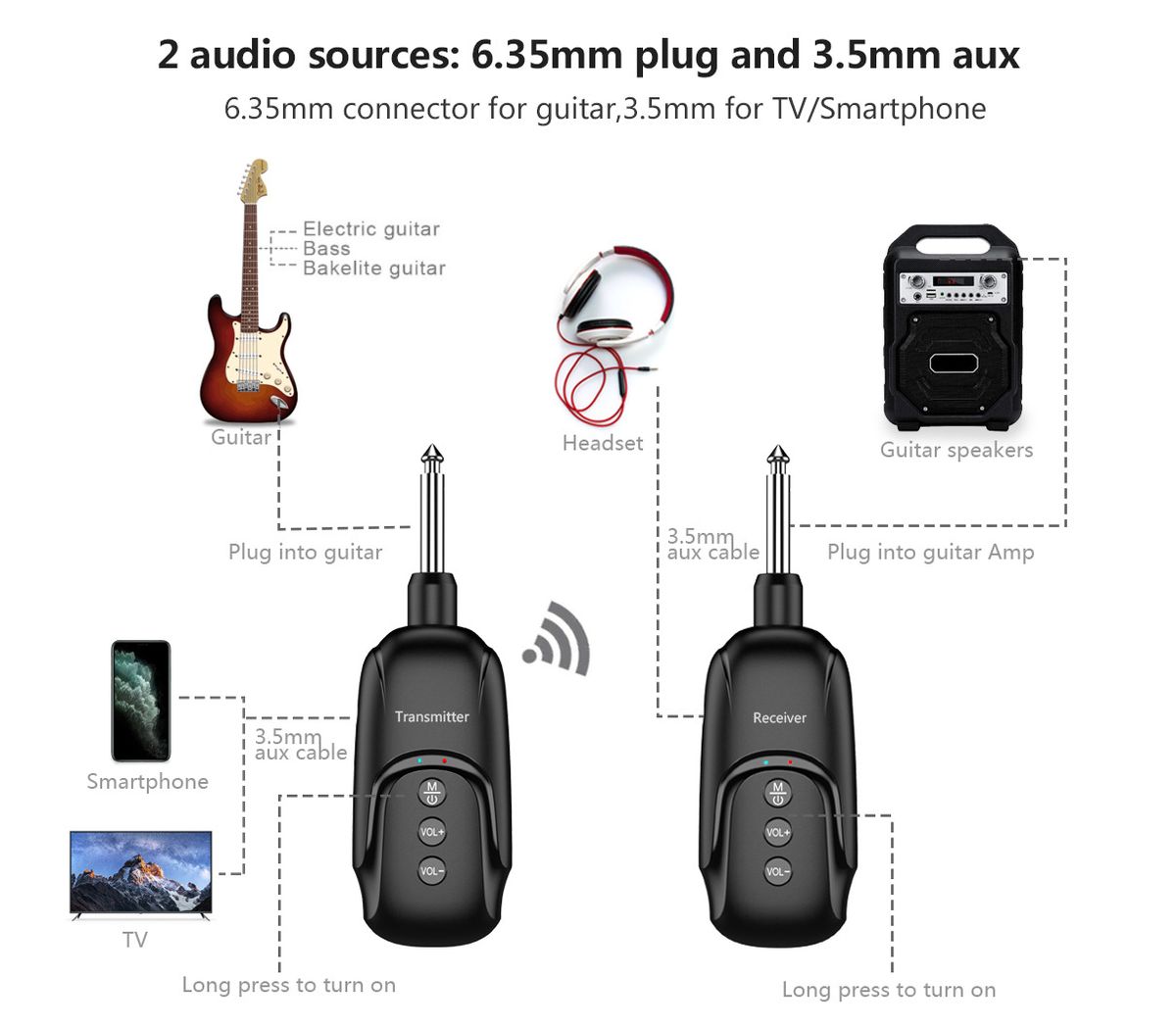 Transmission distance: 30m for outdoor transmission, 15m for outdoor transmission