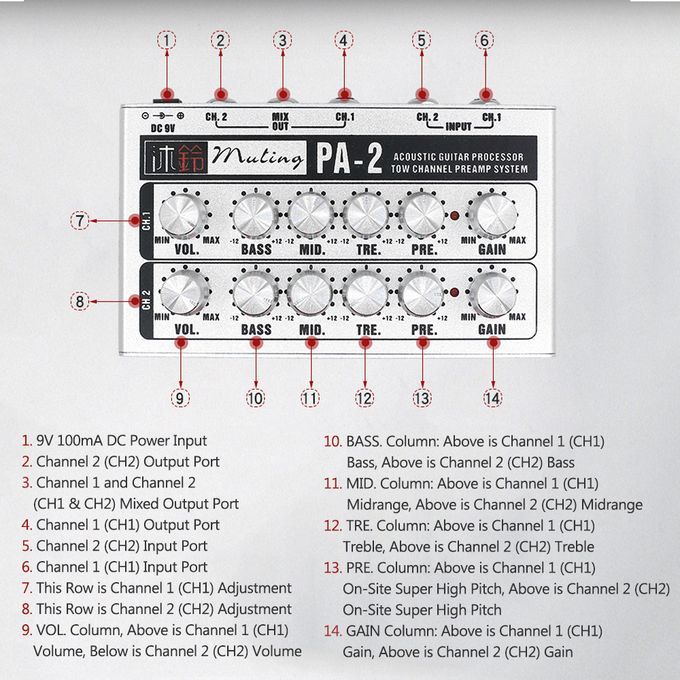 It is an independent two-channel four-stage equalization preamplifier that can adjust low, medium, high, and super high pitches.