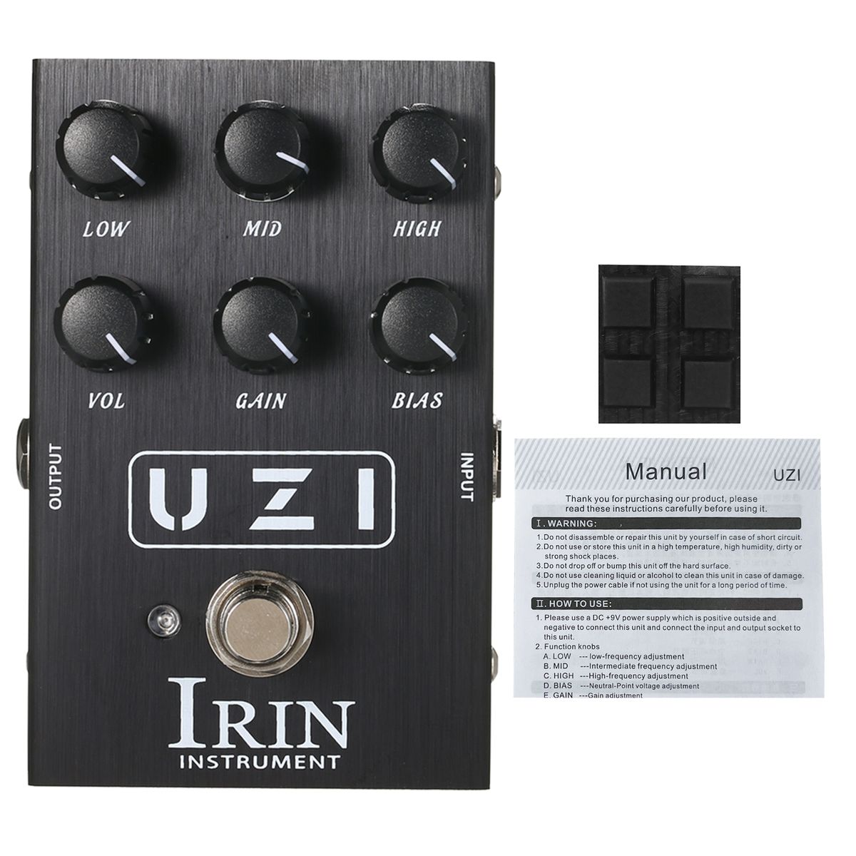 Features:Features heavy rock distortion effect, with neutral-point voltage(BIAS), volume and gain control knobs.