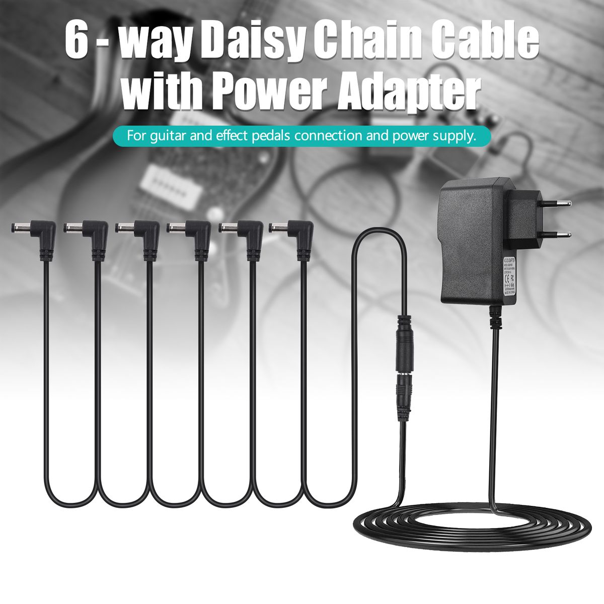Guitar effect pedal supply adapter with 6 ways daisy chain cable for guitar effect pedals connection.