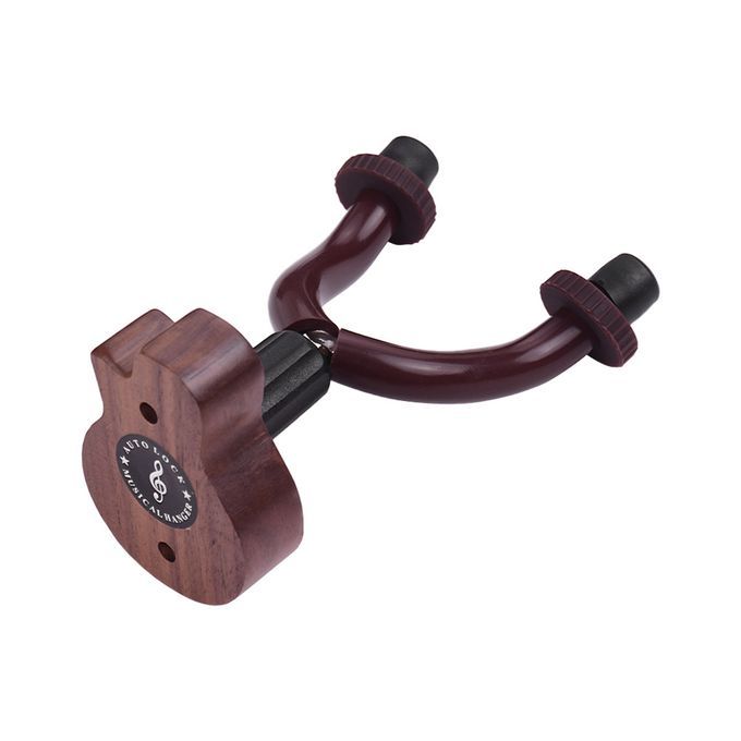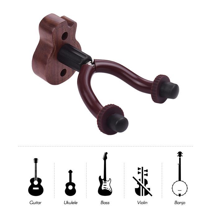Wall mount hanger for acoustic/ electric guitar, bass, ukulele and other string instruments.