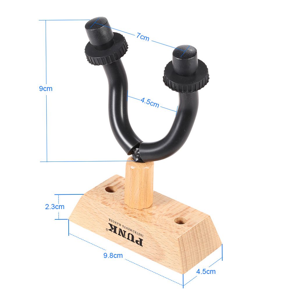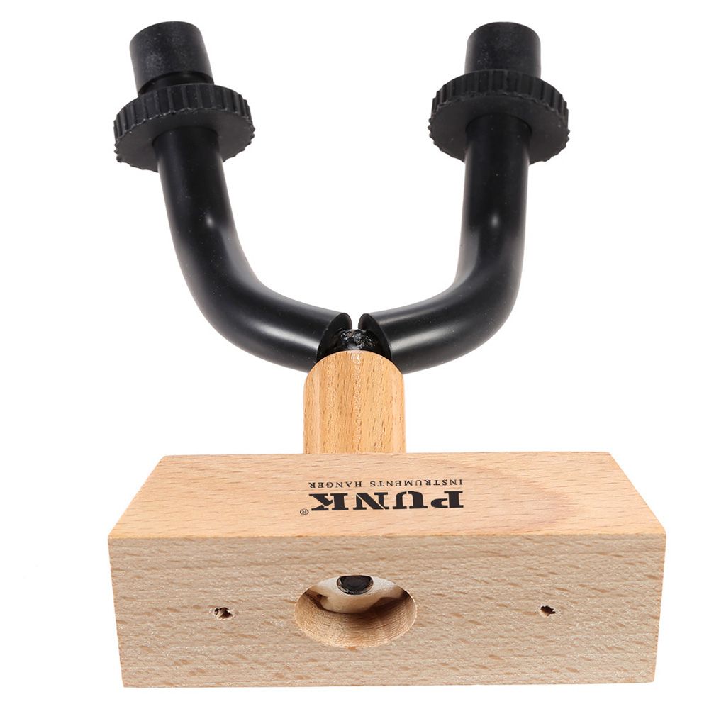 This guitar wall mount hanger provides a secure way for storing your guitar, bass, violin, mandolin, ukulele and other string instruments.
