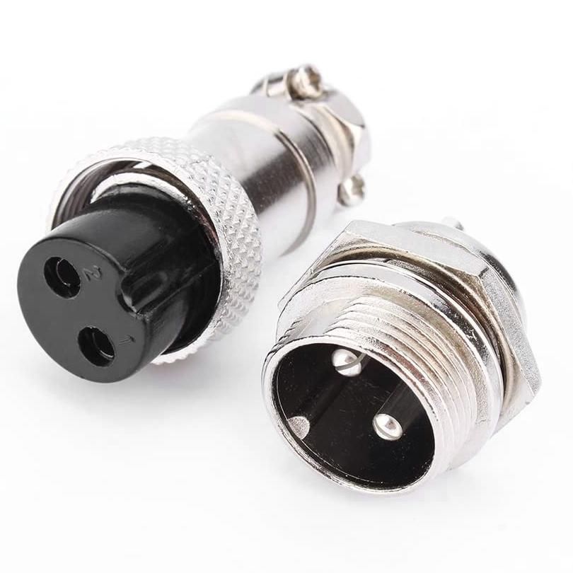 1 set x GX16 2-pin screw type aviation connector electrical socket (male + female)