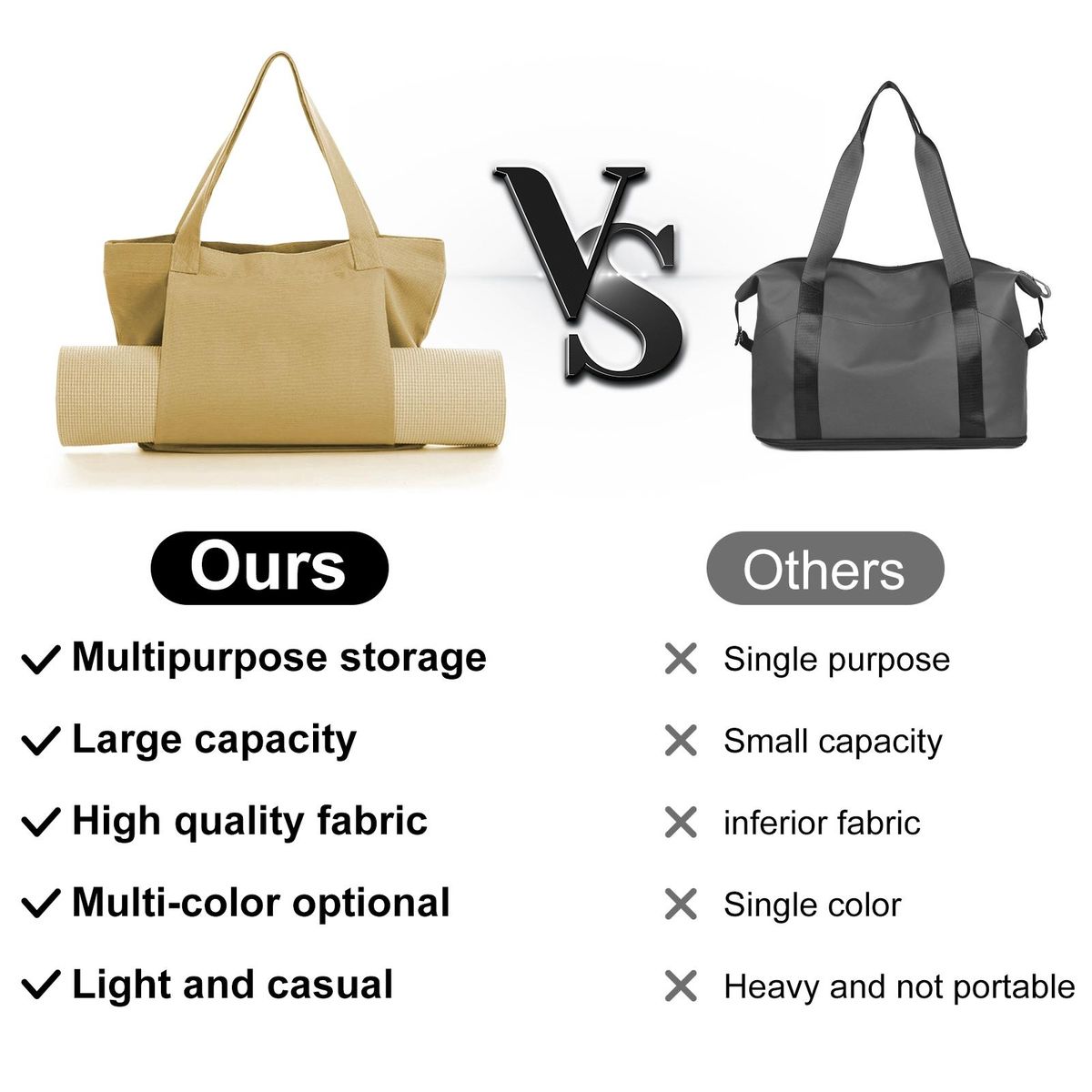 With minimalistic design, this yoga mat bag is environmentally friendly and does not lose its color. More importantly, it features a large capacity and openings on both sides, making it compatible and more convenient for storage.