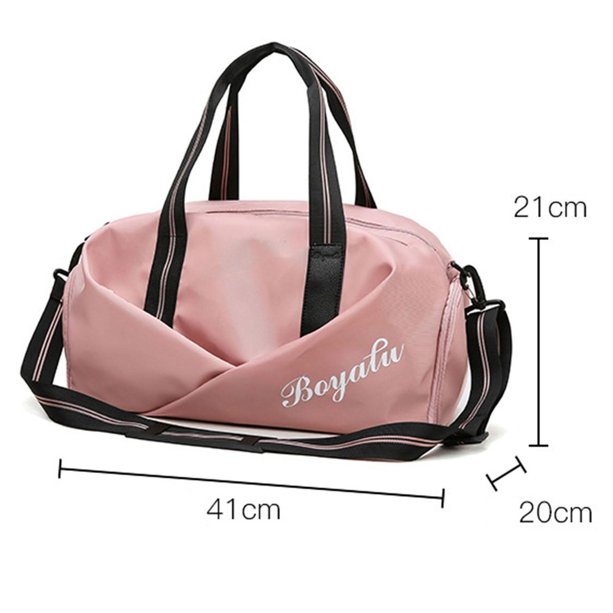 The length of this travel bag is 41cm, the width is 20cm and the height is 21cm.