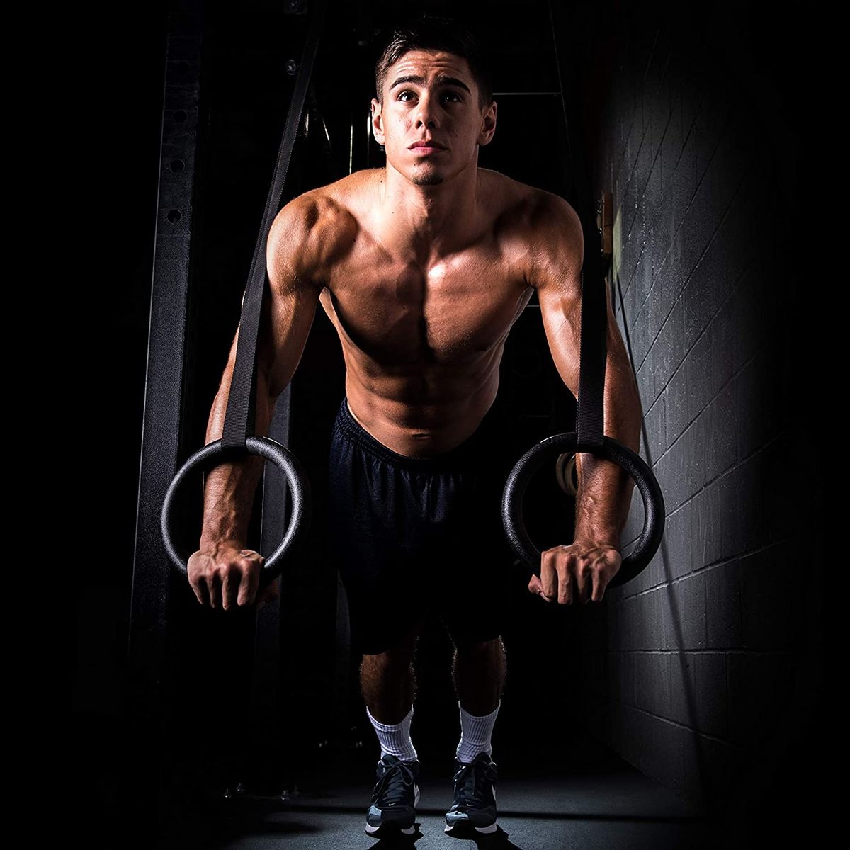 Engage your muscles and core with exercises such as pull ups, push ups, dips, rows, muscle ups, chest flies and so on for a functional and varied free range of movement. Treat pains in the cervical vertebra and hunch back.