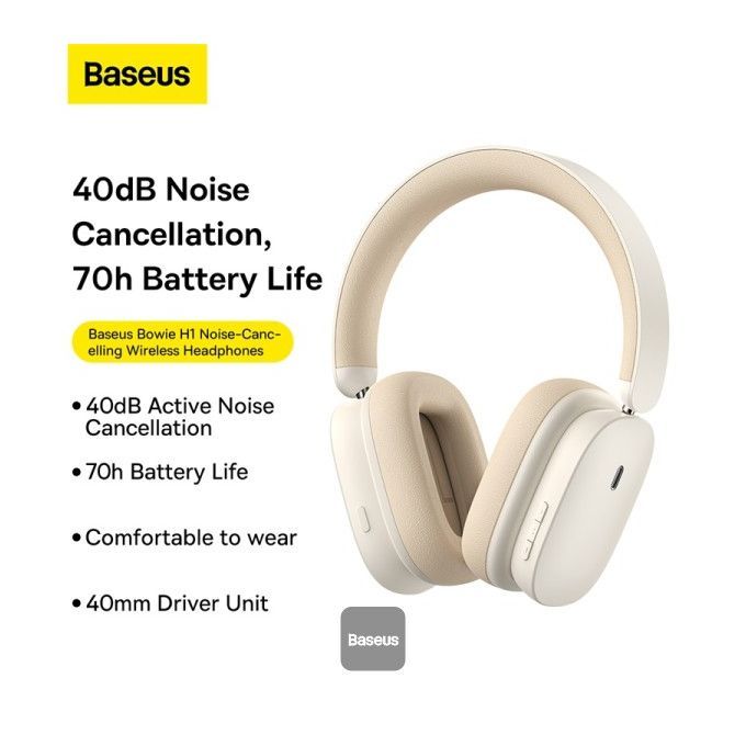 Baseus H1 Bowie Noise-Cancelling Wireless Headphone 70 Hour of Battery Life.Hybrid Active Noise Cancellation.Comfortable to wear with one click transparency