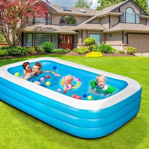 This rectangular frame pool is not only easy to set up but is fun for the whole family too.