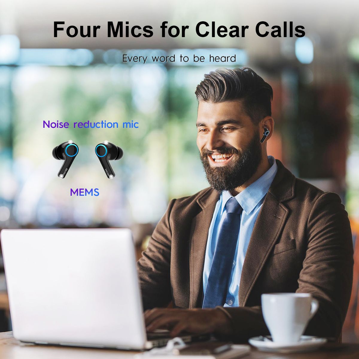 Three Modes of Noise Reduction:The default mode is environmental noise cancellation, and Long press the touch panel for 2 seconds, it will turn into the active noise cancellation mode, you can enjoy your music without distractions. Long press the touch panel for another 2 seconds, it will turn into the transparency mode, you can hear the surroundings without taking off your wireless earphones.Local delivery & Local aftersales service: We aim at making it easier and more convenient for you to shop locally. The local aftersale service center--Calcare can help you when you have any questions about our product. Taking the product, you can go to the any Calcare center for consulting. Besides, local delivery can have a good advantage for the time you get the products. Less time, much simpler!Fashionable Design of Rhythmic Light:Its cool appearance of colorful light has attracted numerous people. Just like a rainbow dancing with music. 12mm moving coil loud speaker with deep bass accompanying with this coll lighting effect will take you into a music tour.Built-in Dual Noise Cancelling Microphone: Double microphone noise reduction system suppresses environmental noise. The default mode of the ear phones is ENC, two MEMS and two noise reduction MICs pick up your voice and isolate it from outside noise.