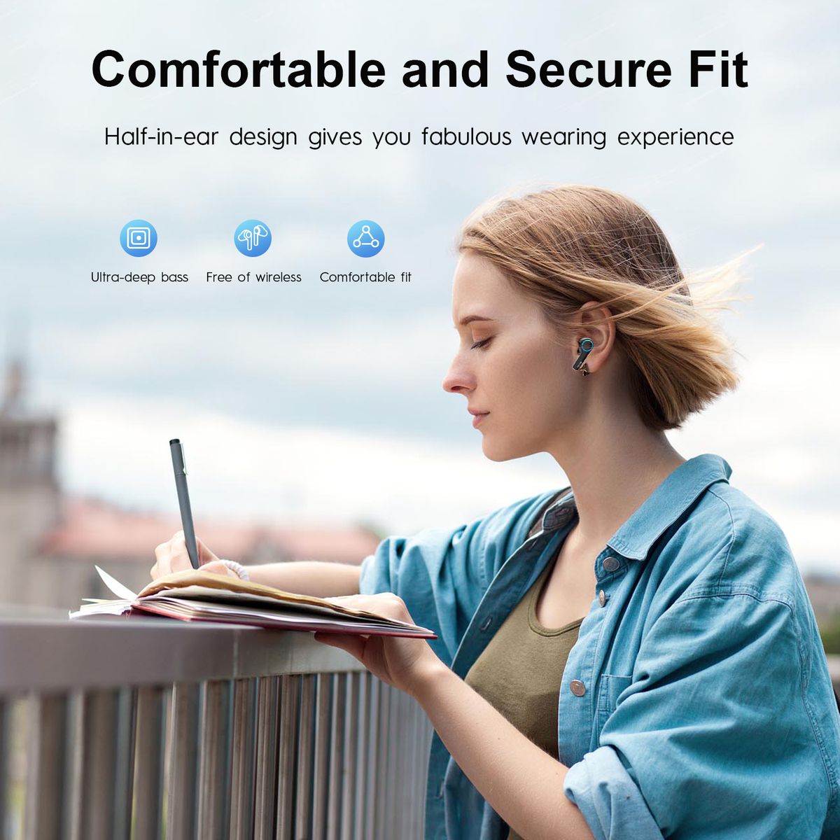 Carry Your Music Everywhere and Anytime: Portable charging case design, convenient earphone storage,ultra-long standby and smart touch control make you to easily achieve different functions that you want. This wireless earbuds will be your good accompany when you do workouts, listen to the music, watch videos or play games.