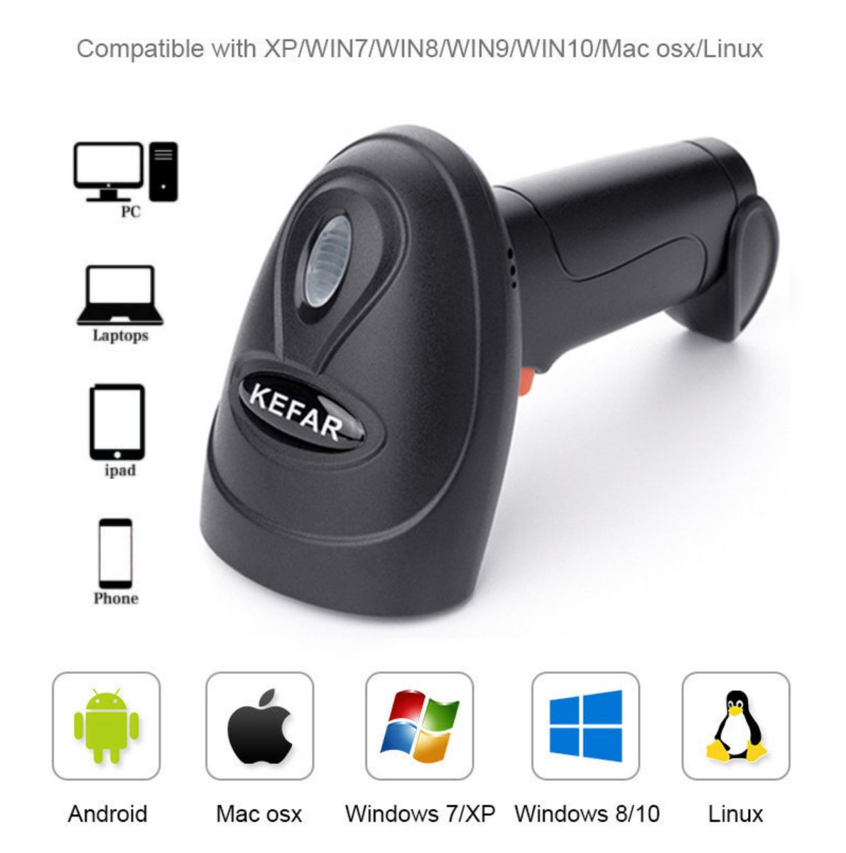 【Support Screen Scanning】: The wireless barcode reader has the function of collecting digital images and can read barcodes on the screen of mobile phones and laptops. Has instant upload mode and storage mode. Offline storage mode can be used in environments away from the wireless receiver. It can store up to 1500,000 barcode information.
