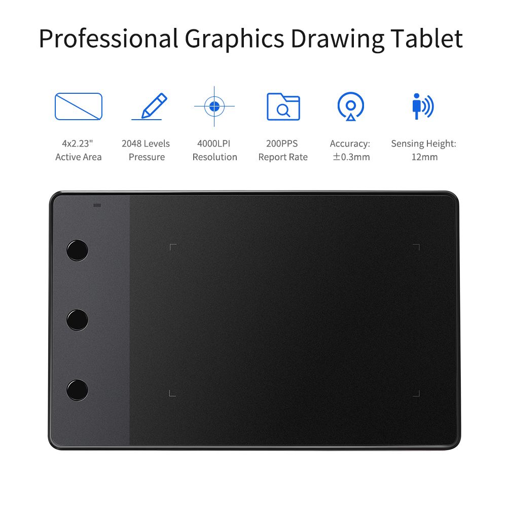 4x2.23 inch active area, 4000 LPI resolution, the graphics tablet suits for art designing, document signature, OSU gaming, online course, etc.