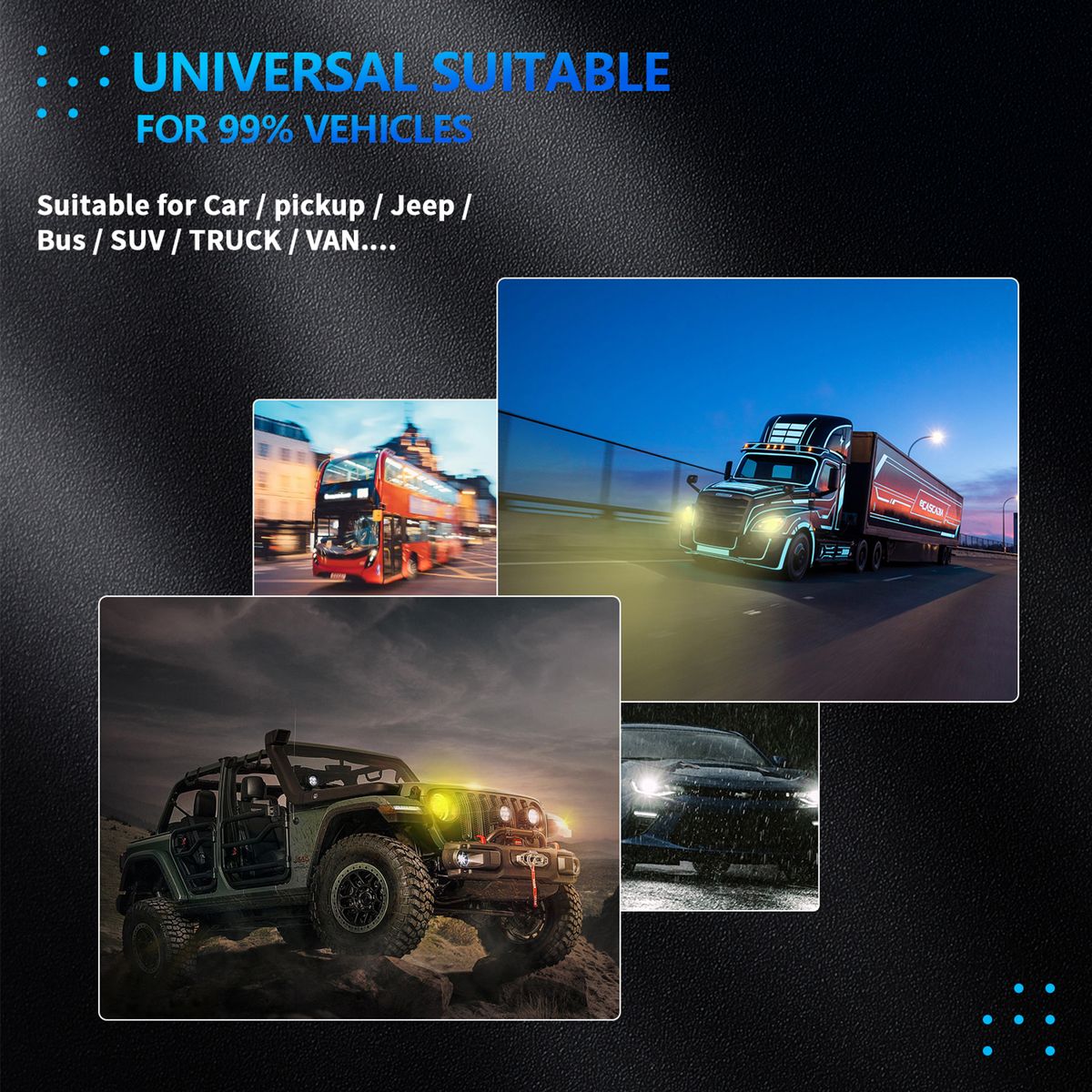 Premium Lamp Beads: Equipped with 24 high-brightness CSP dual-color 3570-55mil CSP chips, the luminous brightness far exceeds typical halogen bulbs, and the light is fuller and shadow-free. Premium quality lamp beads improve visibility in darkness and bad weather.