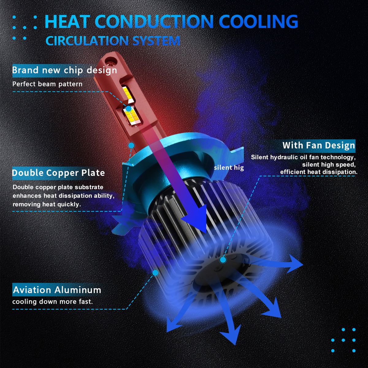 Constant Current Intelligent Temperature Control Module: The external temperature control intelligent drive can recognize the lamp body temperature, share the heat, avoid the risk of burning the lamp and the light decay problem caused by temperature, reduce the headlight temperature, and extend the lifespan.