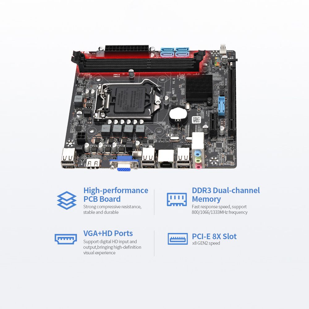 Equipped with dual-channel DDR3 memory slots, fast response speed, support 800/1066/1333MHz frequency.