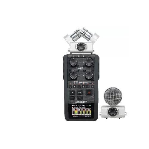 RecorderRecording Media SD card: 16 MB to 2 GBSDHC card: 4 GB to 32 GBSDXC card: 64 GB to 128 GBInput Connections 4 x XLR/TRS combo jacks; XLR: Pin 2 hot; TRS: Tip hot1x 1/8" stereo mini jack (XYH-6 MIC/LINE IN)Input Gain - & infin; to 55.5 dB (PAD OFF)- & infin; to 35.5 dB (PAD ON)Input Level - & infin; to 46.5 dB (XYH-6 MIC/LINE IN)Input Impedance 6.8 k & Omega; (INPUTS 1 to 4)2 k & Omega; (XYH-6 MIC/LINE IN)Maximum Input Level +22 dBu, PAD ON (INPUTS 1 to 4)Phantom Power +12V /+24V /+48V, independent (INPUTS 1 to 4)2.5V plug-in power, (XYH-6 MIC/LINE IN)Equivalent Input Noise -120 dBu or lessOutput Connections 1x 1/8" stereo mini jack (LINE OUT)1x 1/8" stereo mini jack (PHONE OUT)Output Level -10 dBu when output load impedance is 10 k & Omega; or more (LINE OUT)20 W +20 W into 32 & Omega; load (PHONE OUT)Built-in Speaker 400mw 8 & Omega; mono speakerRecording Formats WAV, MP3Sample Rate 44.1/48/96 kHz (WAV)44.1 kHz (MP3)Bit Depth 16, 24 (WAV)Bit Rate 48/56/64/80/96/112/128/160/192/224/256/320 kbps (MP3)Max Simultaneous Recording 8 (L/R + INPUT 1 to 4 + L/R backup), backup recording: -12dB lower than set L/R input gain (WAV)-or-2 (MP3)Recording to SD Card With 2 GB card:03:08:00 (44.1 kHz / 16-bit WAV)34:43:00 (128 kbps MP3)Display 2.0-inch full color LCD (320 x 240 pixels)USB Port Mass Storage Class operation:USB 2.0 high speed-or-Audio Interface operation, multi-track mode:USB 2.0 high speed, multi-track or stereo modesPower Requirements AA size (LR6) battery x 4AC adapter: AD-17 (DC5V/1A/USB-type) (optional)USB bus powerBattery Life Over 20 hours (with alkaline battery, continuous recording)Dimensions 3 x 6 x 1.9" (77.8 x 152.8 x 47.8 mm)Weight 9.9 oz (280 g)MicrophoneType XYH-6 X/Y: UnidirectionalMSH-6 MS: Unidirectional and bi-directionalSensitivity XYH-6 X/Y: -41 dB, 1 kHz at 1 PaMSH-6 MS: -37 dB, 1 kHz at 1 Pa (unidirectional);-39 dB, 1 kHz at 1 Pa (bi-directional)Input Gain XYH-6 X/Y: - & infin; to 46.5 dBMSH-6 MS: - & infin; to 42.5 dBMaximum SPL XYH-6 X/Y: 136 dB SPLMSH-6 MS: 120 dB SPL (unidirectional)122 dB SPL (bi-directional)Dimensions XYH-6 X/Y: 3.1 x 2.4 x 1.8" (78.9 x 60.2 x 45.2 mm)MSH-6 MS: 2.3 x 2.66 x 1.65" (58 x 67.6 x 42.1 mm)Weight XYH-6 X/Y: 4.6 oz (130 g)MSH-6: 3 oz (85 g)Packaging InfoPackage Weight 3.1 lbBox Dimensions (LxWxH) 10.5 x 8.2 x 3.3"