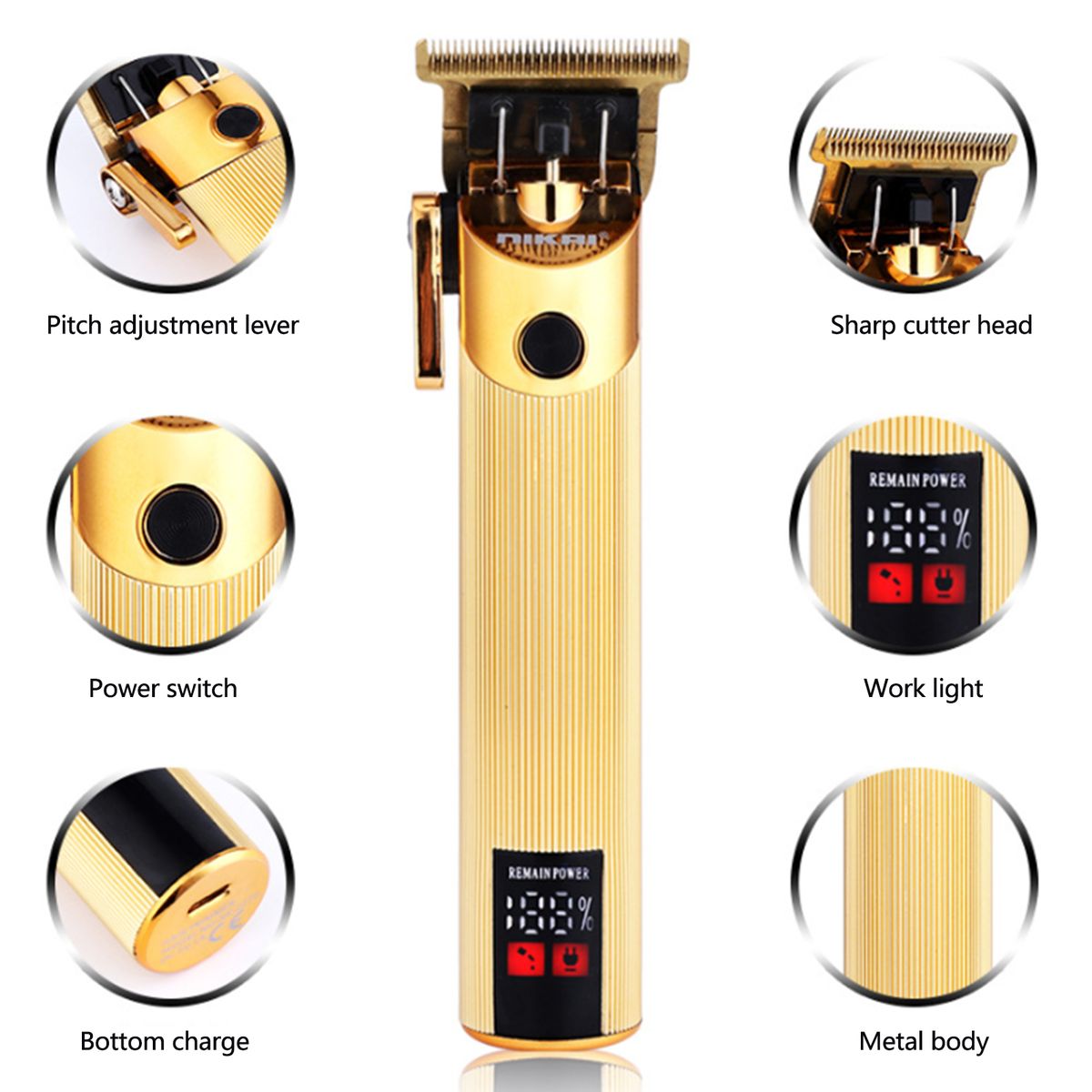 The hair clipper has LCD liquid-crystal display, 2 gears speed adjustment, 0.2mm ultra-short pitch, IPX4 waterproof, hair salon special oil head electric hair trimmer.