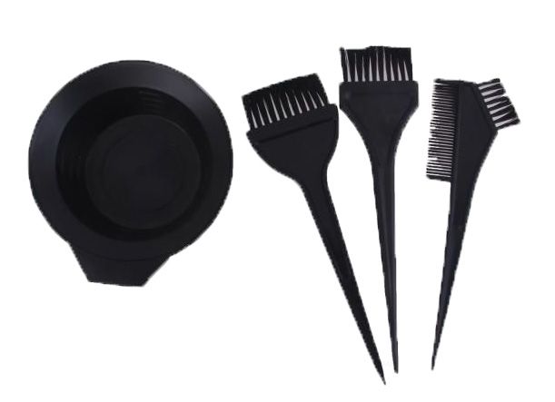 Hair color bowl with comb and brushes, complete kit for salon hair styling