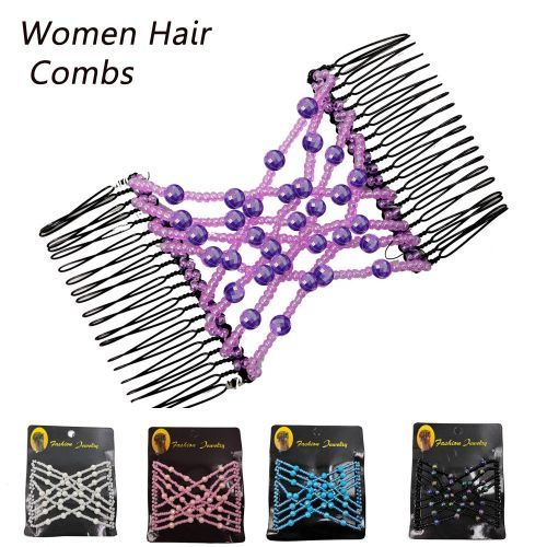1X HAICAR Magic Hair Comb Ladies Bead Stretchy Women Hair Combs Professional Double Magic Slide Metal Comb Clip Hairpins AA#