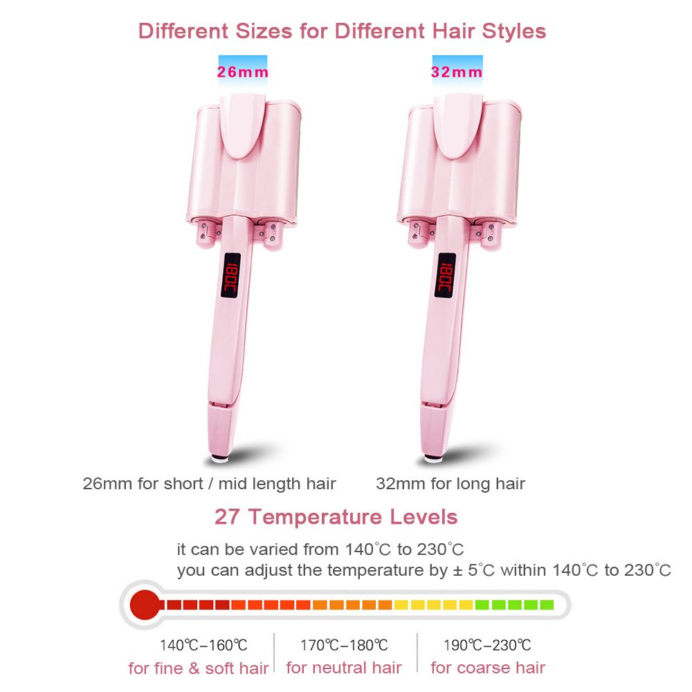 Qualified heat conductor with different diameter, 26mm and 32mm, if you have hair with mid or short length, you can choose the 26mm, while it would be better to choose the 32mm for long hair.