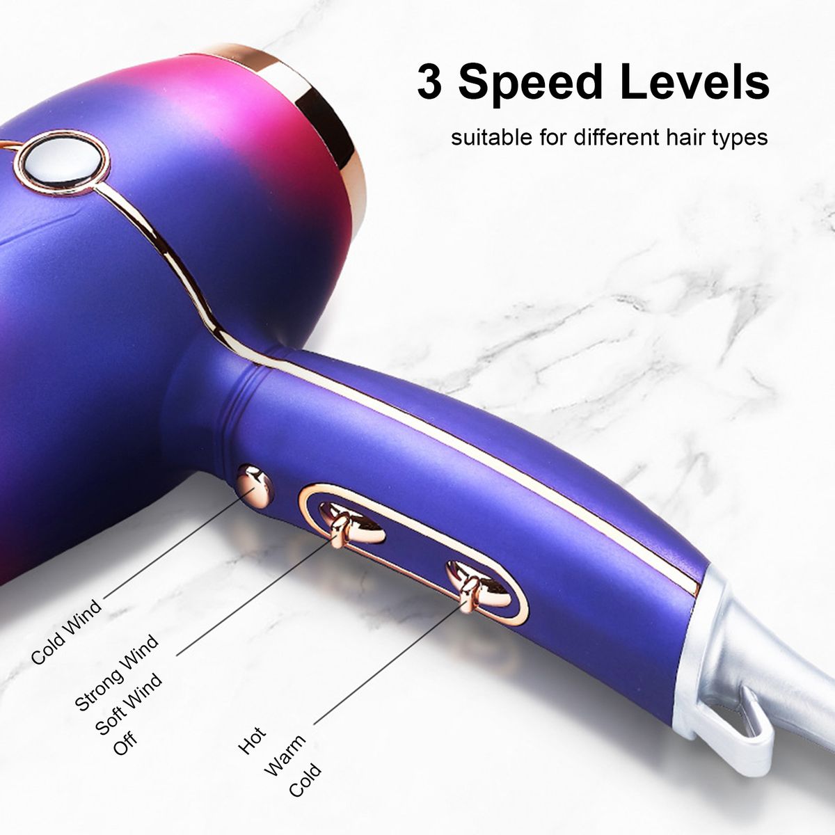 3 Speed levels adjustable, suitable for all hair types, meeting your different needs, this also can make a difference in saving your time of blowing hair dry.