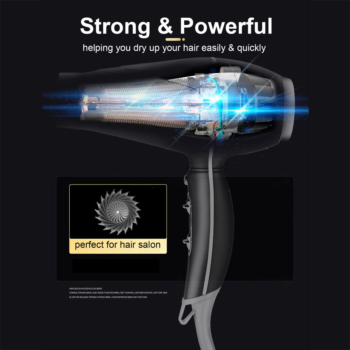 Upgraded AC motor, powerful but low noise, helping you dry up your hair easily and quickly.