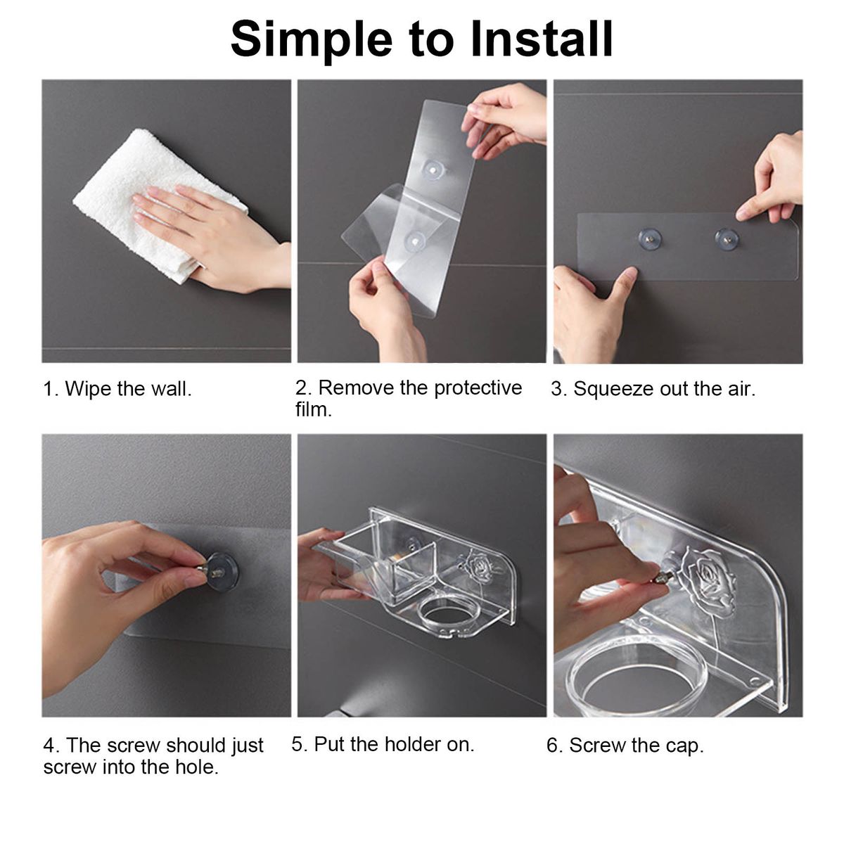 Wall mounted, no drilling is needed as it\'s adhesive, easy for you to fix it on wall steadily.