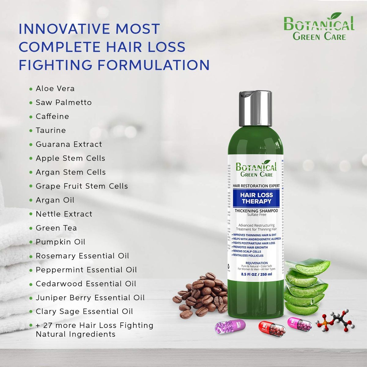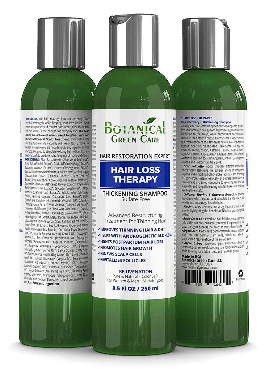 Botanical Green Care "Hair Loss Therapy" Sulfate-Free Caffeine SHAMPOO, Alopecia Prevention and DHT Blocker. Anti-Hair Loss/Hair Growth Shampoo. Doctor Developed. NEW 2018 FORMULA!