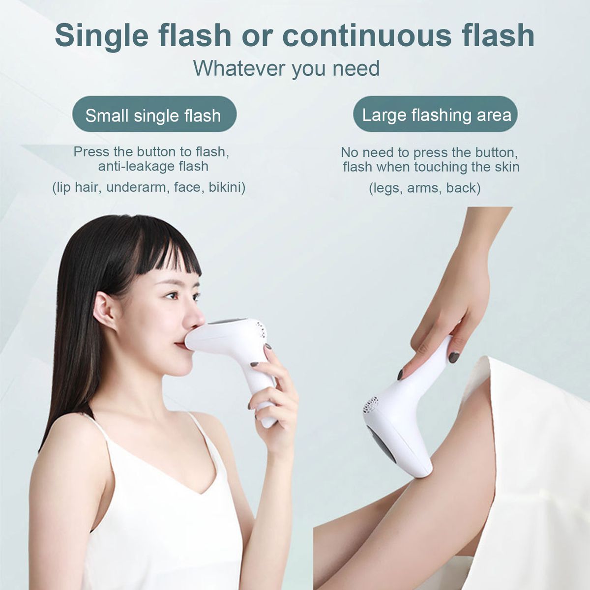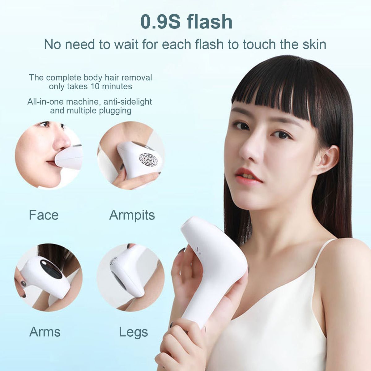 900000 flashes design. It use exclusive pulsed light IPL technology: quick, painless and gain almost permanent hair removal effcect.