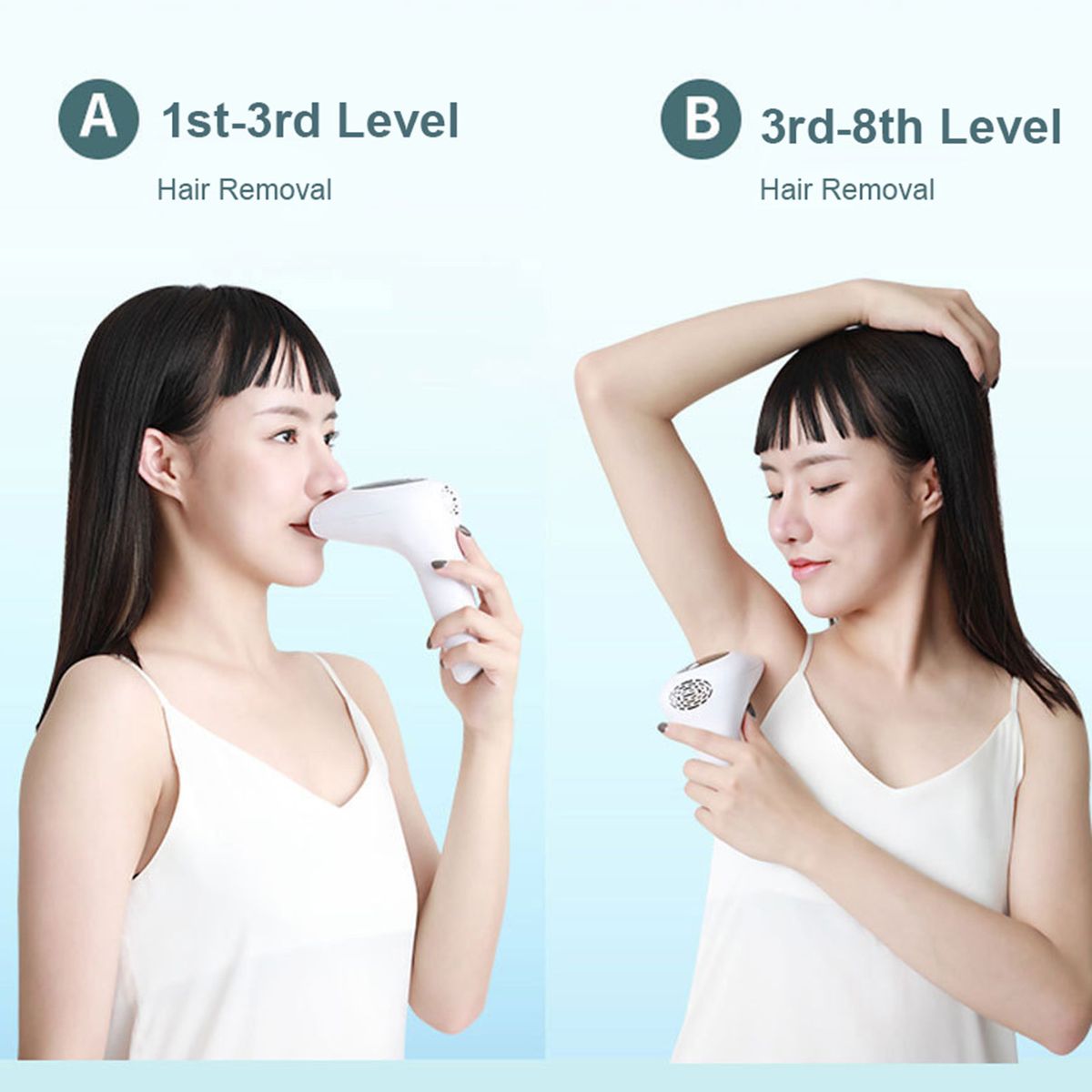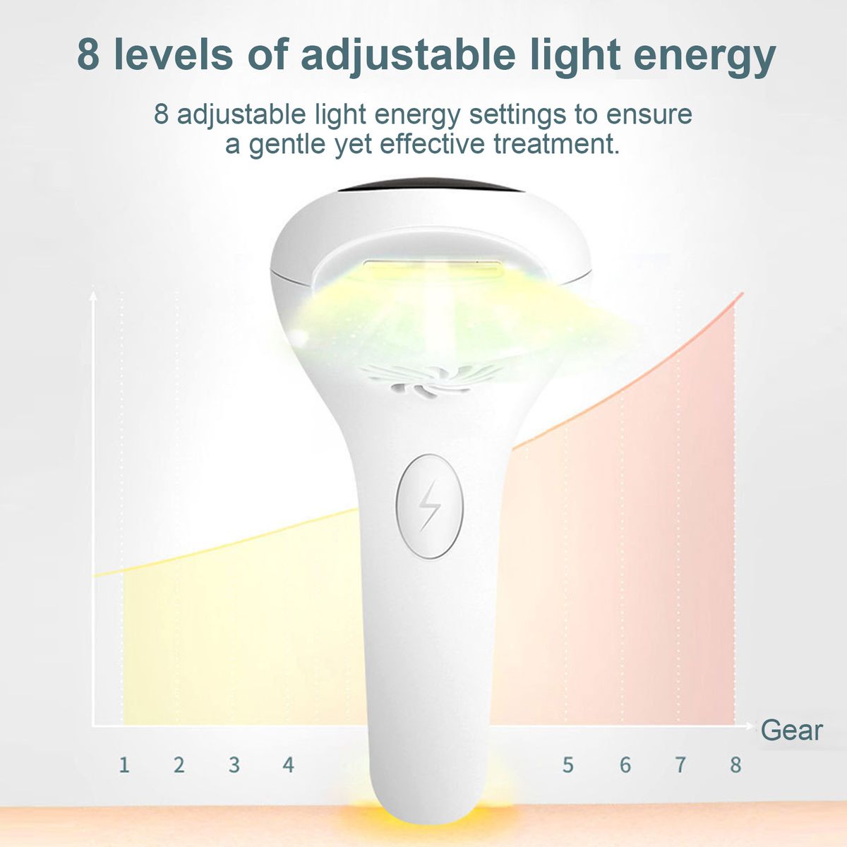 8 adjustable energy level, for the fist time, recommend start from the level 1, step by step up,find the strength that suit you. The IPL hair removal system has 8 adjustable light