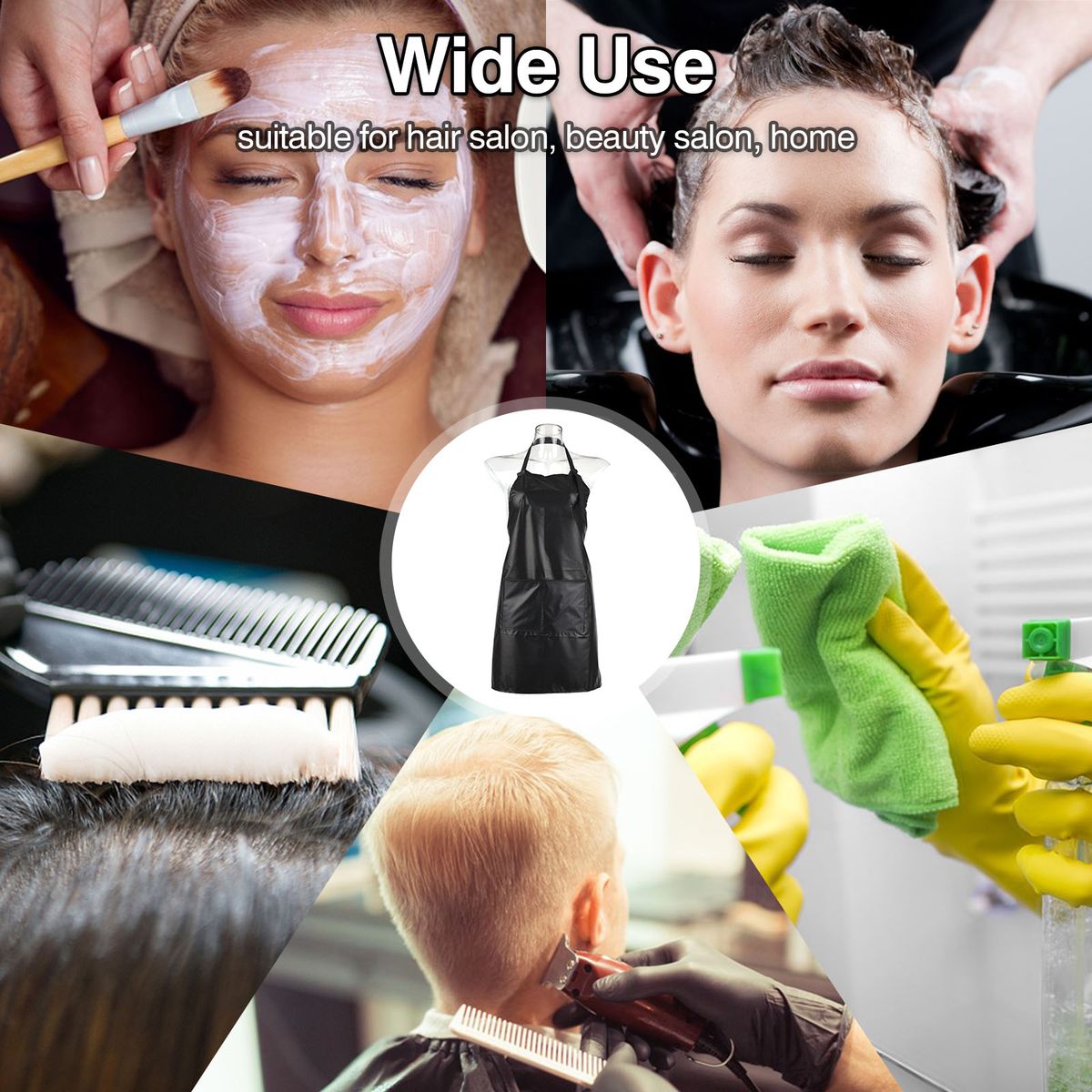 This salon apron is suitable for barber shop, beauty salon and home use. It is fashionable and helpful. Come and have a look.