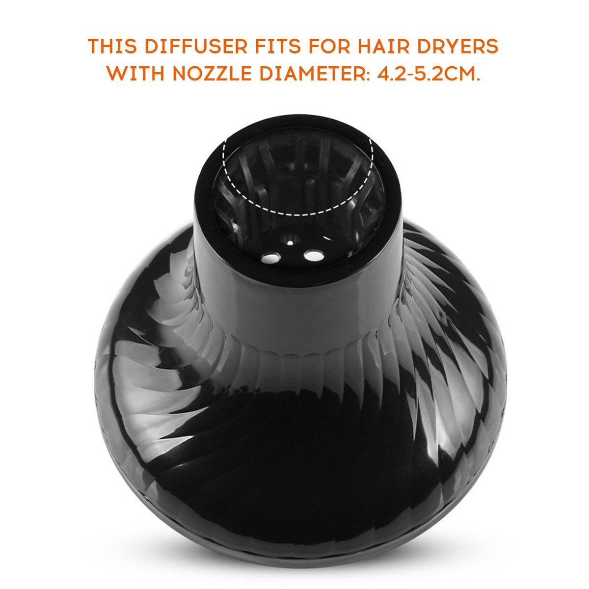 This diffuser fits for hair dryers with nozzle diameter: 4.2-5.2cm.