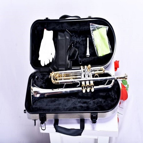 This is a high quality professional trumpet, it comes with the full trumpet accessories such as mouth piece, handglove, cleaning cloth, Belt and many more. The best for beginners and professional players. Best choice for trumpet lovers. Completely packaged inside black box for save handling.