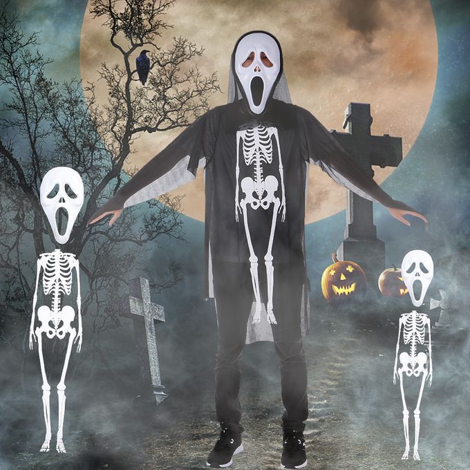 1*Halloween Costume Scary Skeleton Mask Ghost Clothes